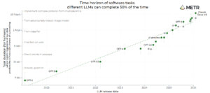 METRのデータが描く曲線は、単なるベンチマーク改善ではありません。AIが連続して思考し、計画し、実行し続けられる時間そのものが伸びていることを示しています。