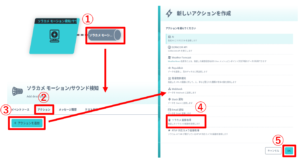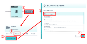 ③「アクションを追加」を押下し「新しいアクション作成」タブを表示。