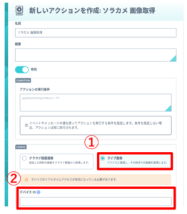 🔲手順④ ソラカメ画像取得アクションを『設定』しよう!