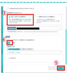 ④「アクションのアウトプットを別のチャネルに送信する」というトグルボタンをONにする。