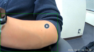 実行後、ライブカメラの映像上に緑色の枠が現れます。この緑色の枠が現れたことが、モーション検知の発生を示し、同時にSORACOM Fluxが動作を開始します。