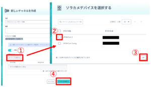 ②「デバイスID」のテキストボックスに使用しているカメラのデバイスIDを入力。