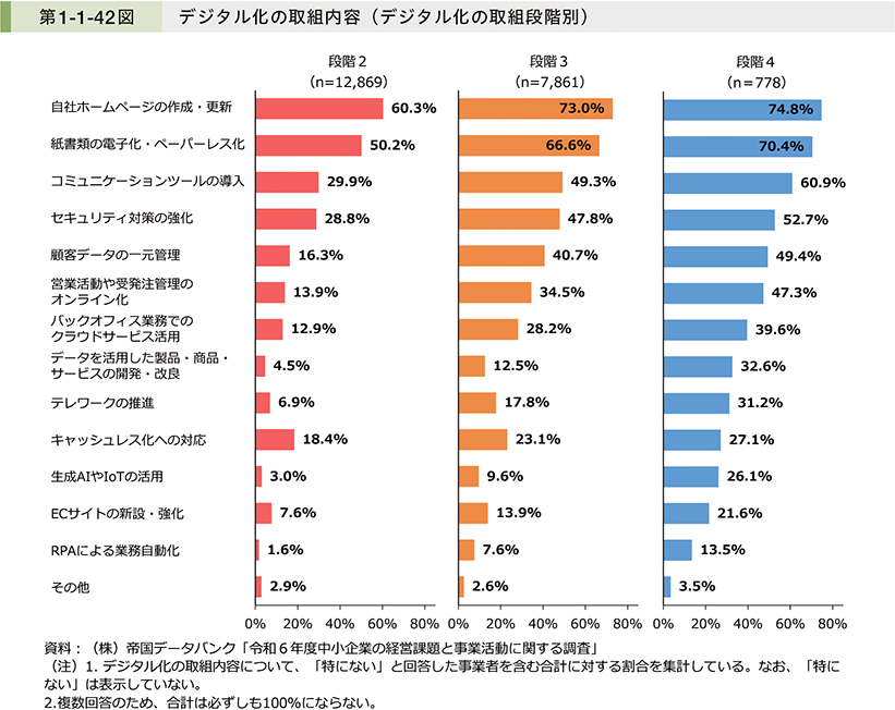 段階2~4の企業がデジタル化として取り組んでいる内容が下図です。