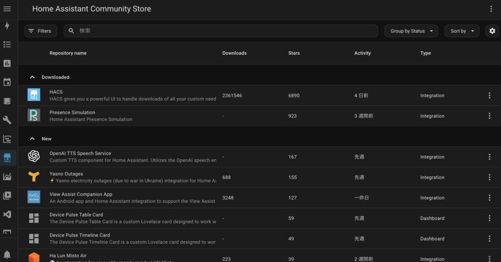 「HACS」のインストール手順に関しては、少し長くなるため省略させていただきます。公式の以下の手順書をご確認ください。