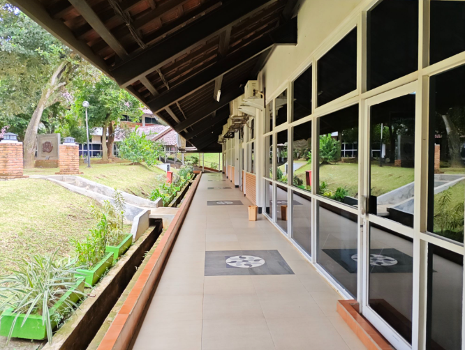 訪問した大学のキャンパス。授業中なので閑散としているが、休み時間になると多くの学生で賑わう。