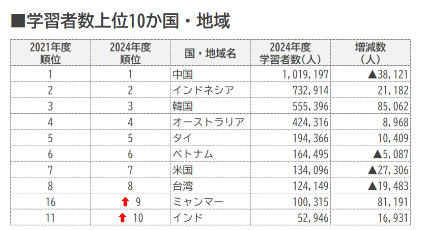 世界屈指の日本語学習者数
