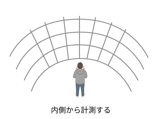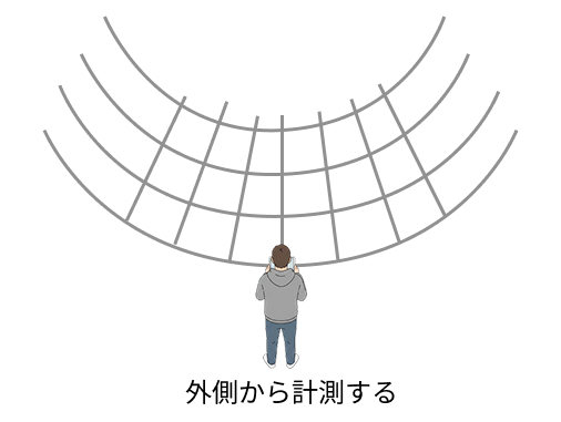 曲率半径以外に、下記の設定を行います。- 「外から計測」または「内から計測」を選択