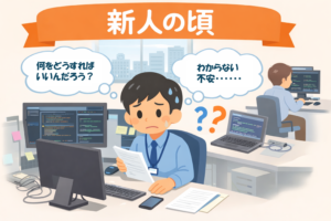 新人の頃は、何をどうすればいいのか分からず、フリーズしてしまうことが多かった気がします。分からない点があっても、すぐに質問や報告をせず抱え込んでしまい、相談のタイミングも遅かったため、作業がなかなか進みませんでした。