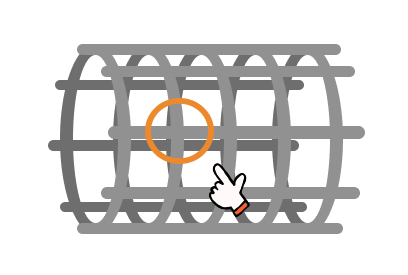 画面中央の黄色の点を鉄筋かごの側面の主筋に合わせます。