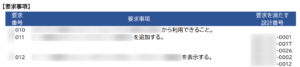 お客様への納品物ではあるので、必要最小限の可読性と体裁を整えつつ、1文節1仕様の本質が損なわれない様に纏めてもらいました。